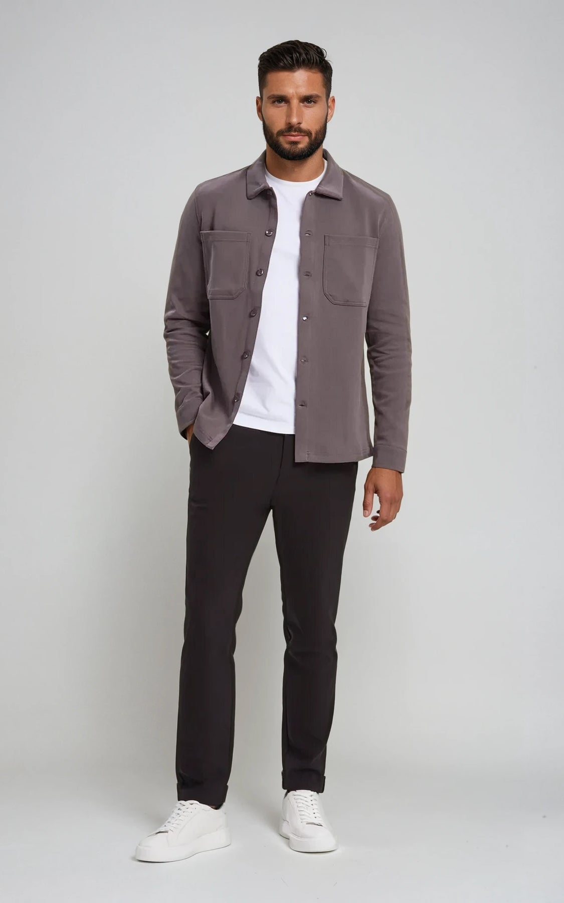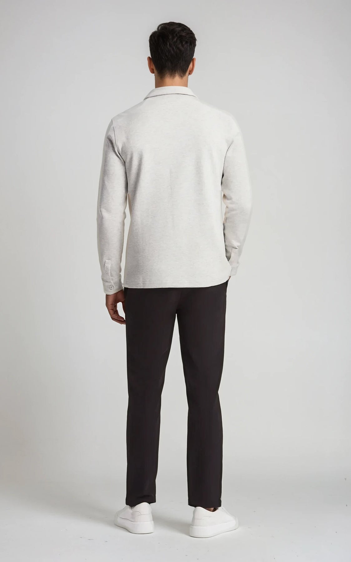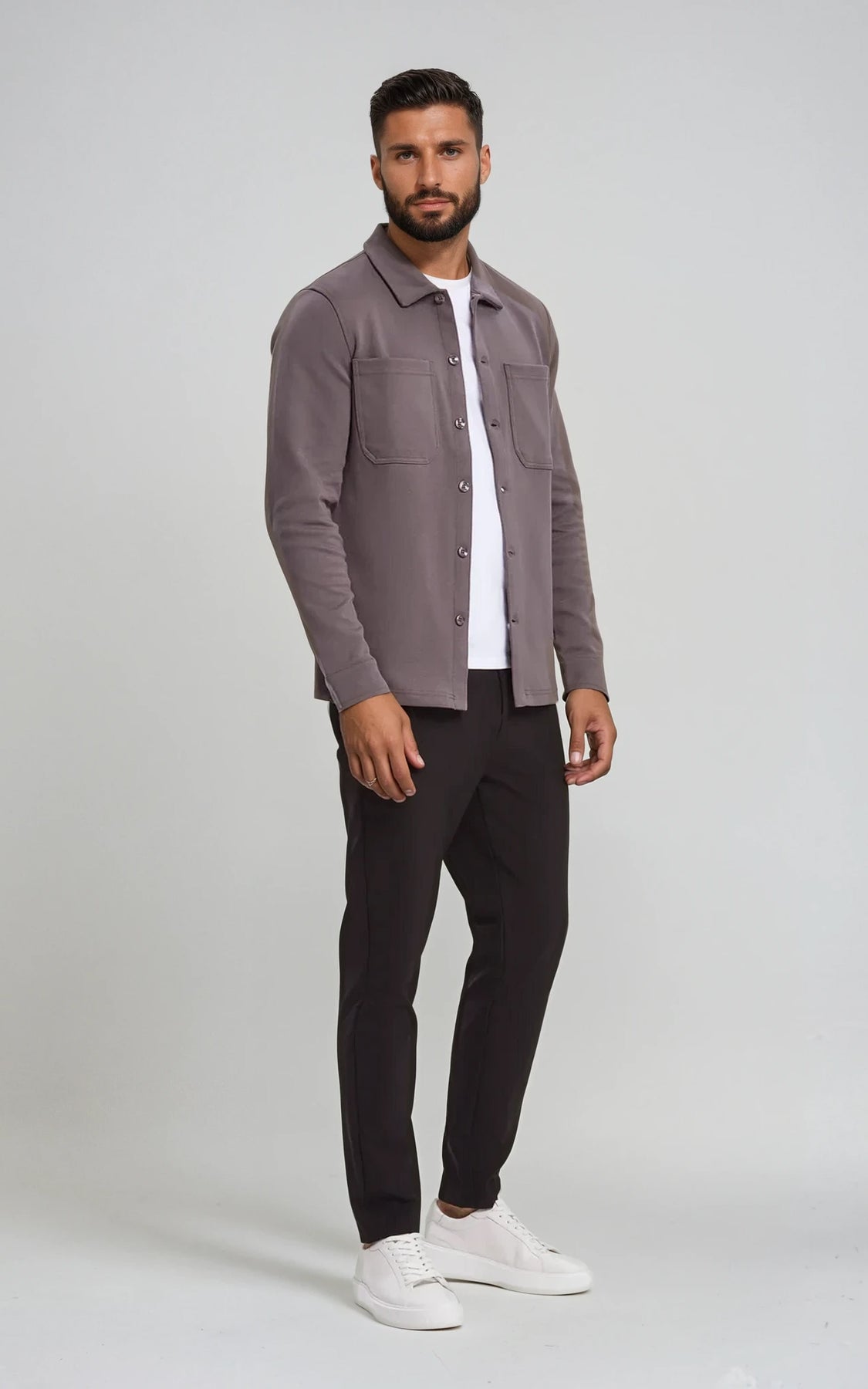 A lightweight athletic overshirt designed for everyday movement and clean, modern styling. Made from a smooth stretch cotton blend, it offers a comfortable fit with added flexibility, making it ideal as a light jacket or mid-layer.